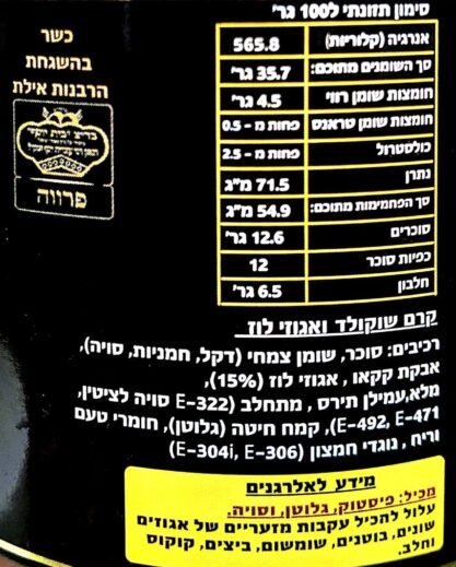 קטגוריות: ממרחי שוקולד, אגוזים ועוד, ממרחים ומליות לאפייה, ממרחים על בסיס אגוזים, ממרחים על בסיס שוקולד