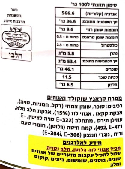 ממרח אגוזי הלוז הוסף לקקאו בכוונה להפחית את כמות הקקאו במוצר.