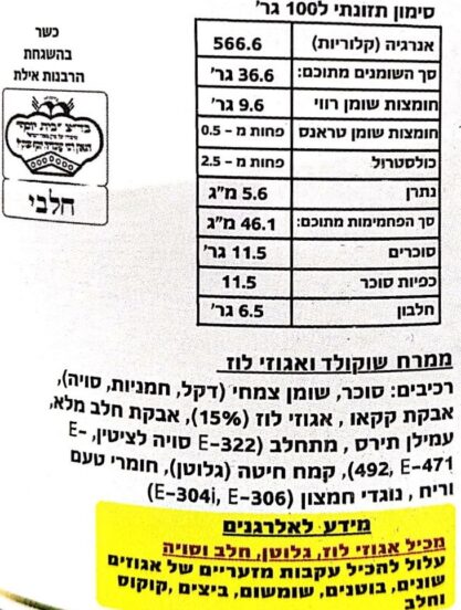 ממרח אגוזי הלוז הוסף לקקאו בכוונה להפחית את כמות הקקאו במוצר.